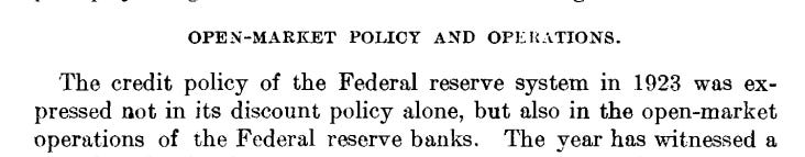 During 1922 and 1923 the Reserve banks discovered, quite by accident, the possibilities of open market dealings in Government securities as an instrument of credit-control.