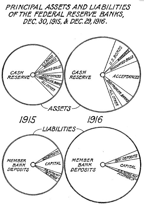 In the early years of the Federal Reserve, its assets (the resources) in balance sheet primarily consisted of the gold, silver and various certificates. These are called as “Cash Reserves”.